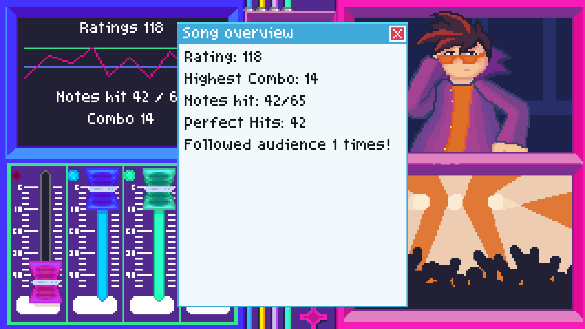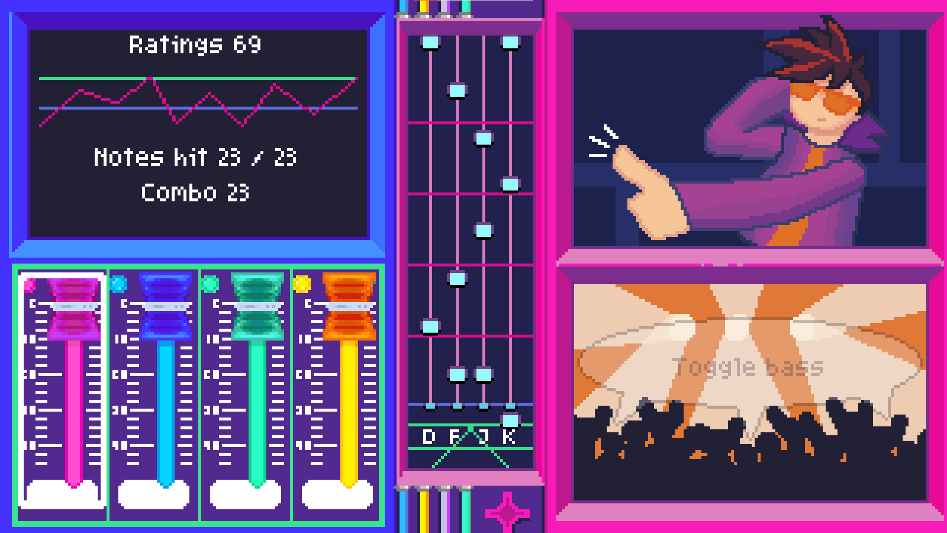 Play as the amazing DJ Wren Stillwater as he remixes and performs songs for a live audience. They will request to mix in different layers of the music to make each performance truly unforgettable.